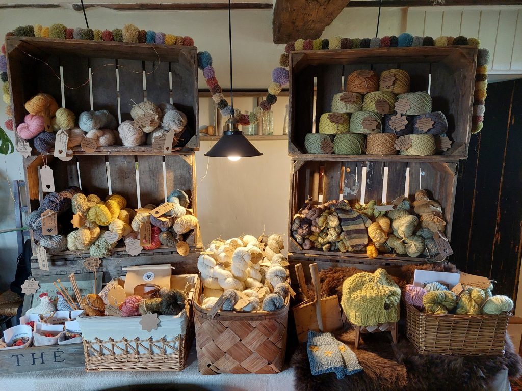 A range of naturally dyed yarns using British wool such as Wensleydale, Blue Faced Leicester and Masham.